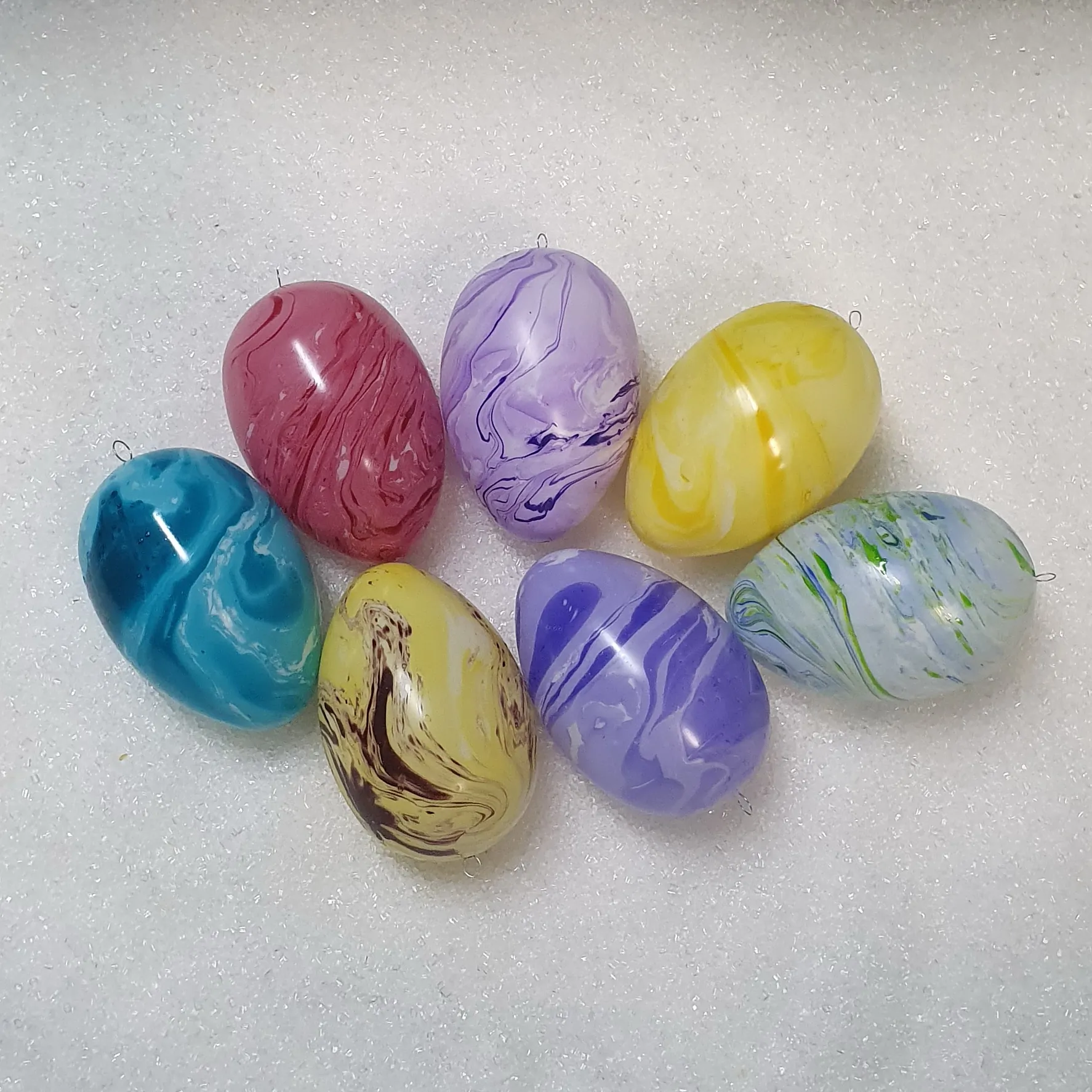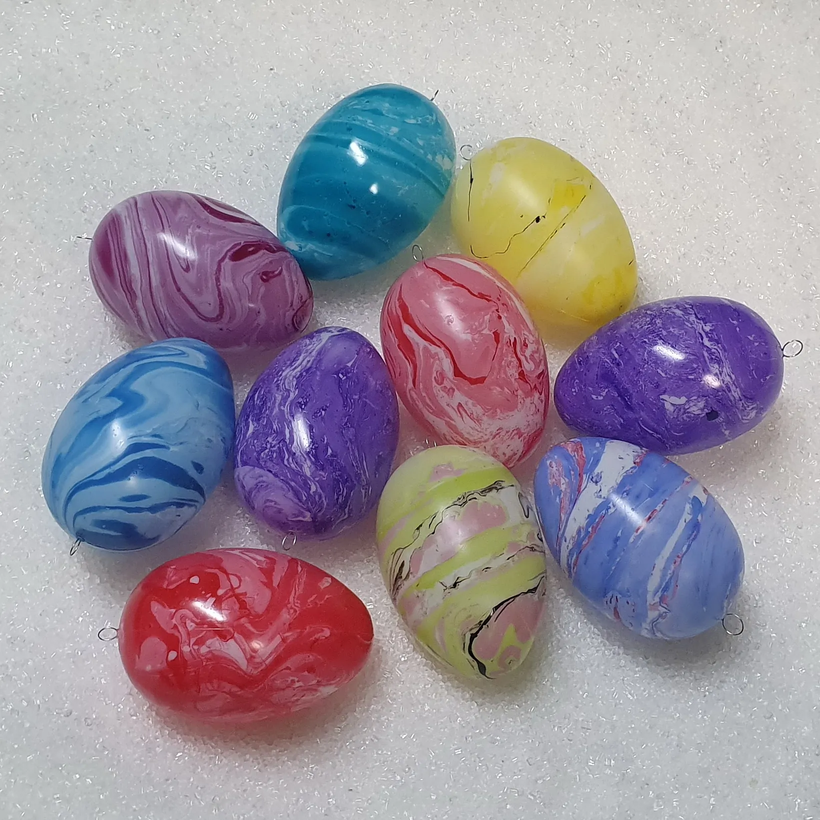 24 Beige Mini-Ostereier aus Kunststoff- Handgesprengelt (Dekobeispiel)