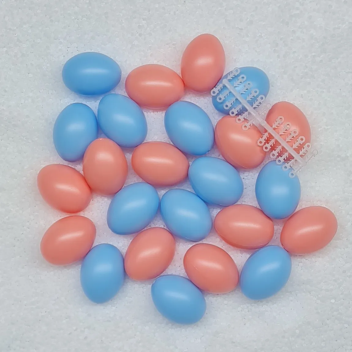 24 Stück Kunststoff-Ostereier (60 mm) mit Aufhänger in hellblau-rosa Farbmischung. Ideale, wetterfeste Osterdeko und Bastelbasis für Marmorieren oder Bemalen. Leuchtende Qualität aus deutscher Produktion.