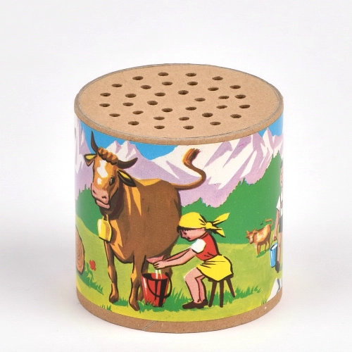 Mechanische Kuhstimme-Dose Ø 6 × 6 cm: Per Kippen erklingt ein authentisches Muhen ganz ohne Batterien. Handgefertigt in Thüringen aus 95 % natürlichen Rohstoffen, 95 % biologisch abbaubar und CE-zertifiziert.