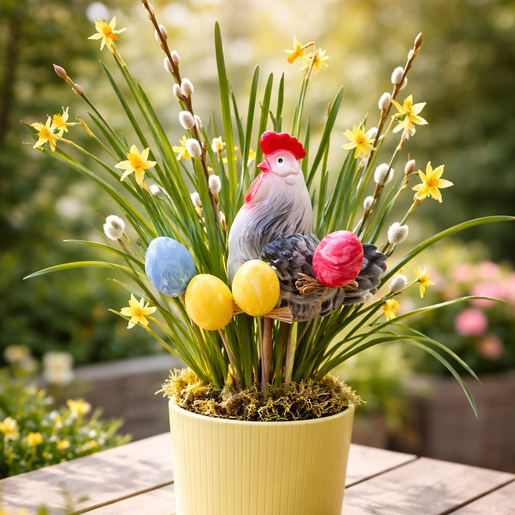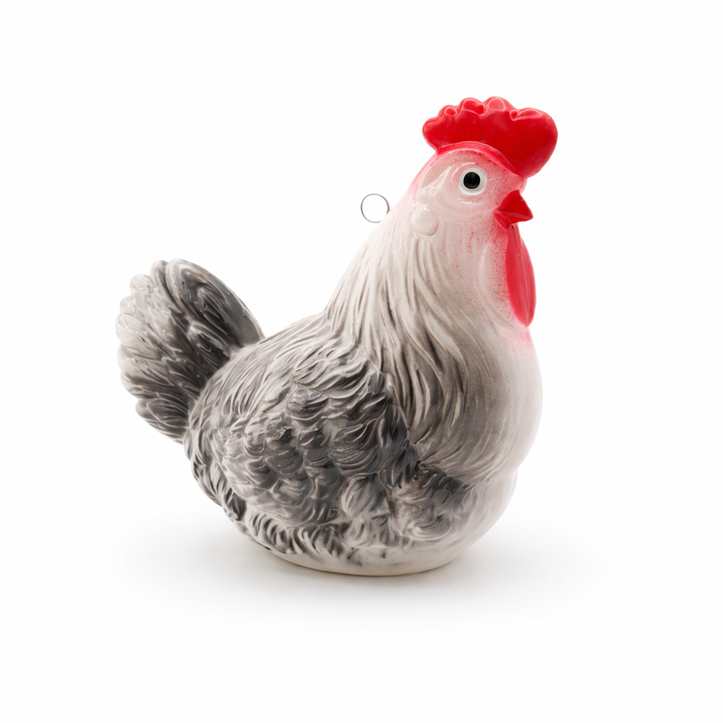 Deko-Henne mit weißschwarzem Federkleid * Handlackiert * Wetterfest * Mit Metallöse