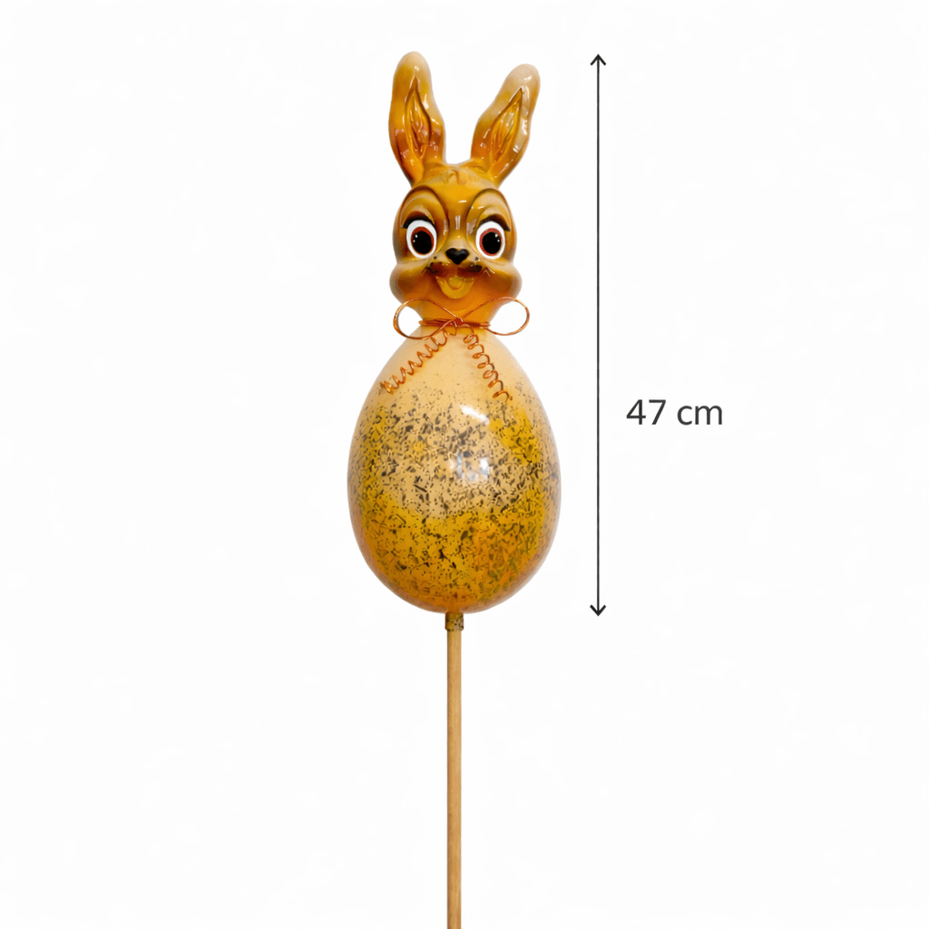 „Hannes der Hofwächter“ Rustikaler, handbemalter Steckhase auf Ei-ein liebevoll angefertigtes Unikat.