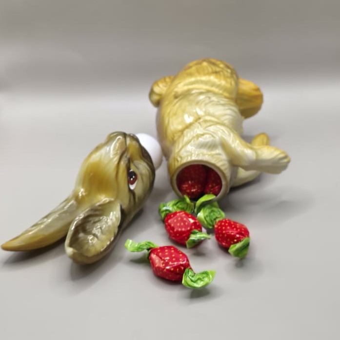 Dekorativer, 2-teiliger Osterhase mit abnehmbarem Kopf. Innen befüllbar mit Süßigkeiten und kleinen Geschenken-ideal als besondere Osterüberraschung. „Ostergeschenk mit Überraschungseffekt“