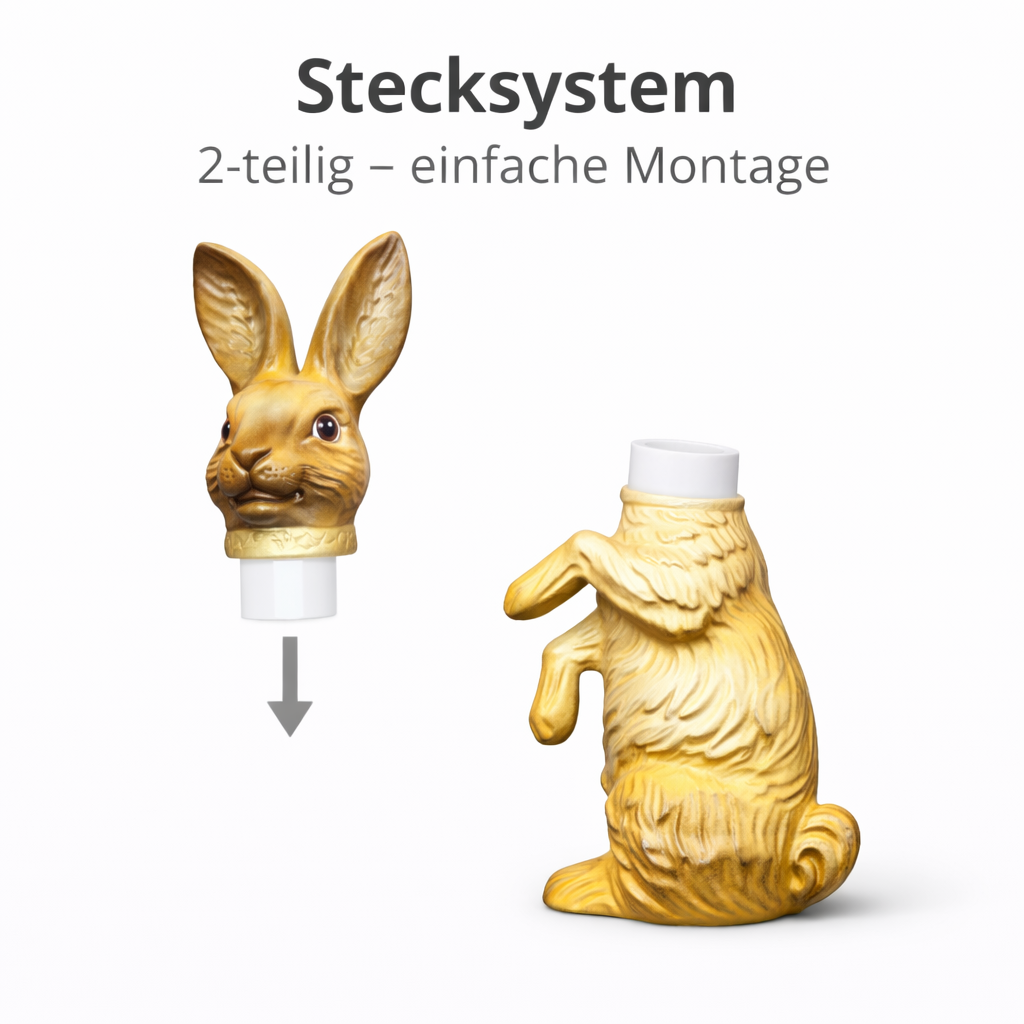 Dieser dekorative Hase überzeugt durch seine hochwertige Verarbeitung und das praktische 2-teilige Stecksystem. Der Kopf lässt sich einfach auf den Körper aufstecken.