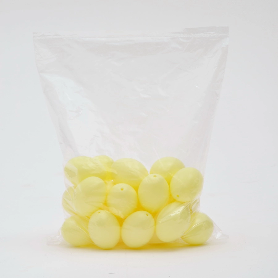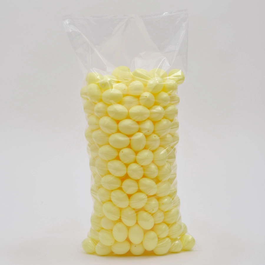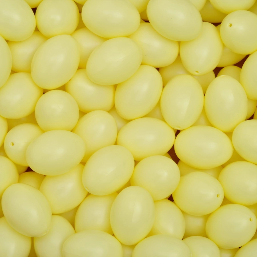 Hellgelbe Kunststoff-Ostereier (60 mm) mit Aufhänger. Erhältlich im 24er oder 100er Set. Zarter, frischer Osterschmuck. Ideal für kreative Basteltechniken. Langlebig und robust für Drinnen und Draußen. Deutsche Qualitätsware.