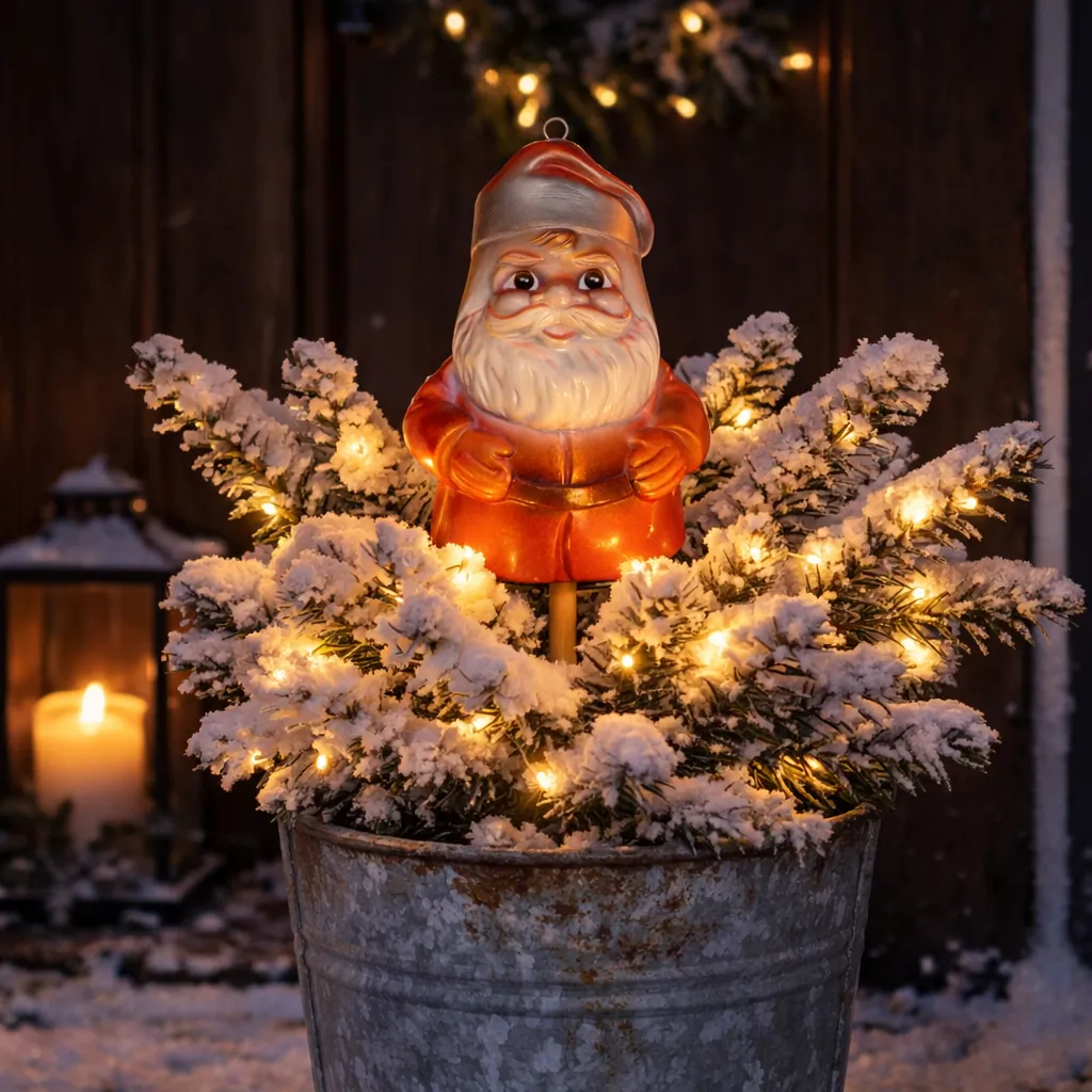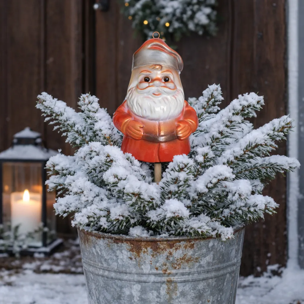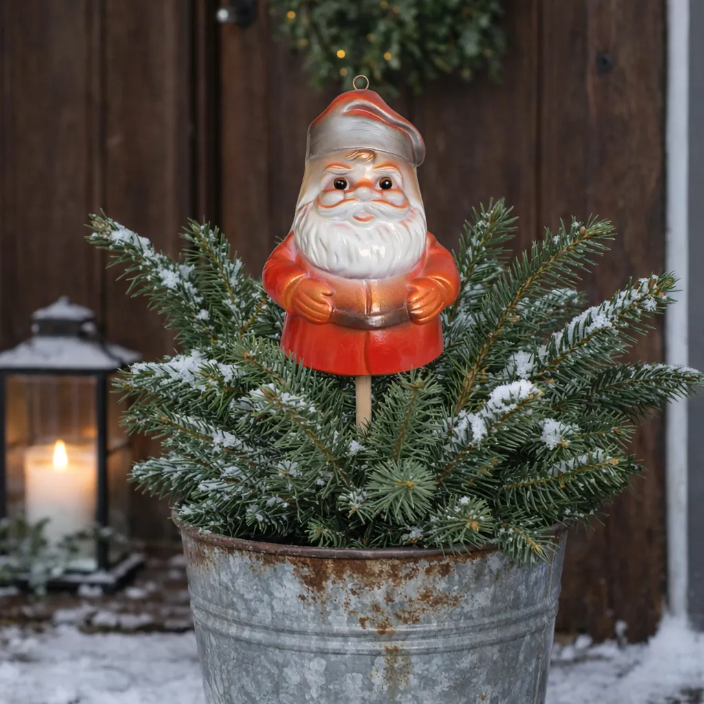 Weihnachtsmannfigur für Innen- und Außendeko, 23cm hoch, mit Metallöse zum Aufhängen.