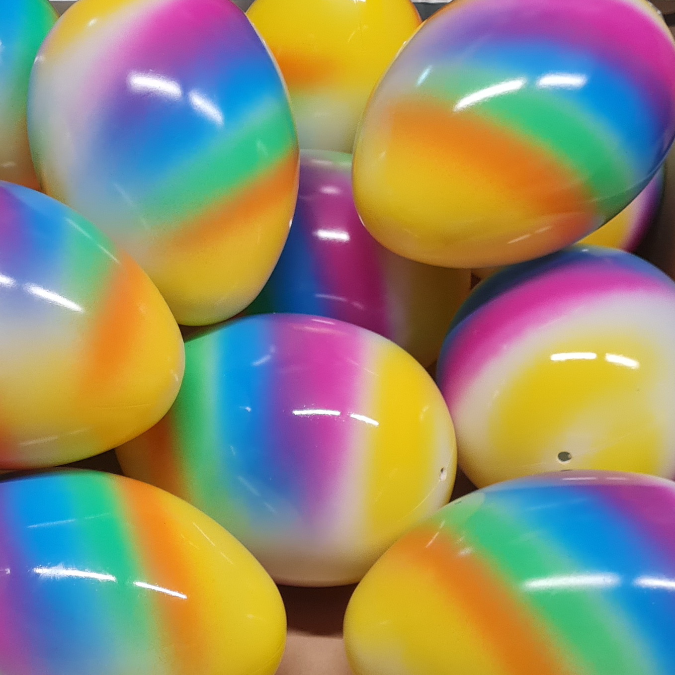 XXL Osterei (24 cm) aus Kunststoff im leuchtenden Airbrush-Regenbogen-Design. Mit Metall-Aufhänger. Idealer, riesiger Hingucker für Innen und Außen. Deutsche Produktion.